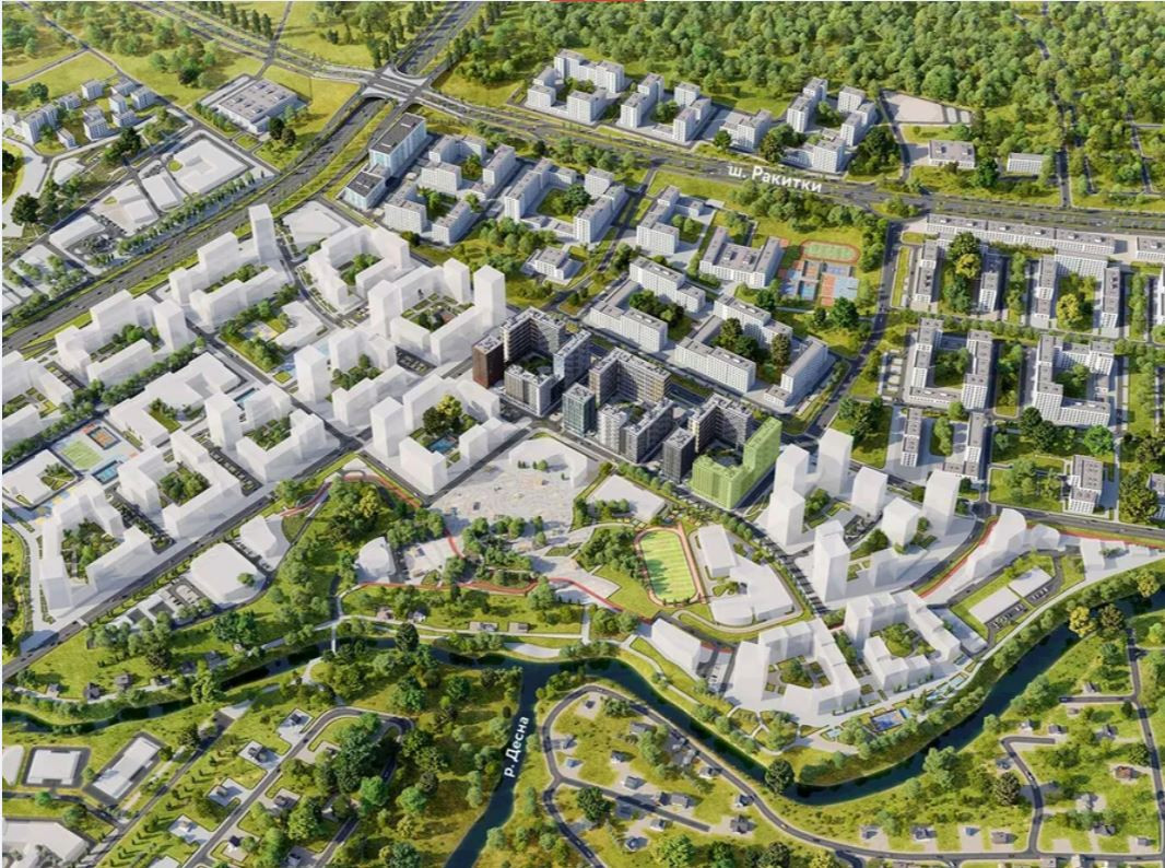 Масштабный ЖК «Деснаречье» состоит из 3 районов («Парк», «Река» и «Лес») в живописном природном окружении — на берегах двух рек.