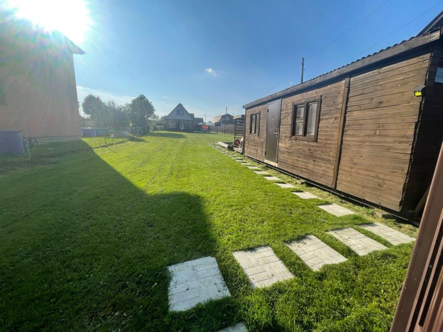 Дом-баня размером 6*8,5 метров расположен на участке в 10 соток, который имеет статус индивидуального жилищного строительства (ИЖС). Дом строился как гостевой , поэтому расположен в конце участка . Есть место для основного дома , Заложен электро кабель под землей . При желании можно построить дом большего размера.
