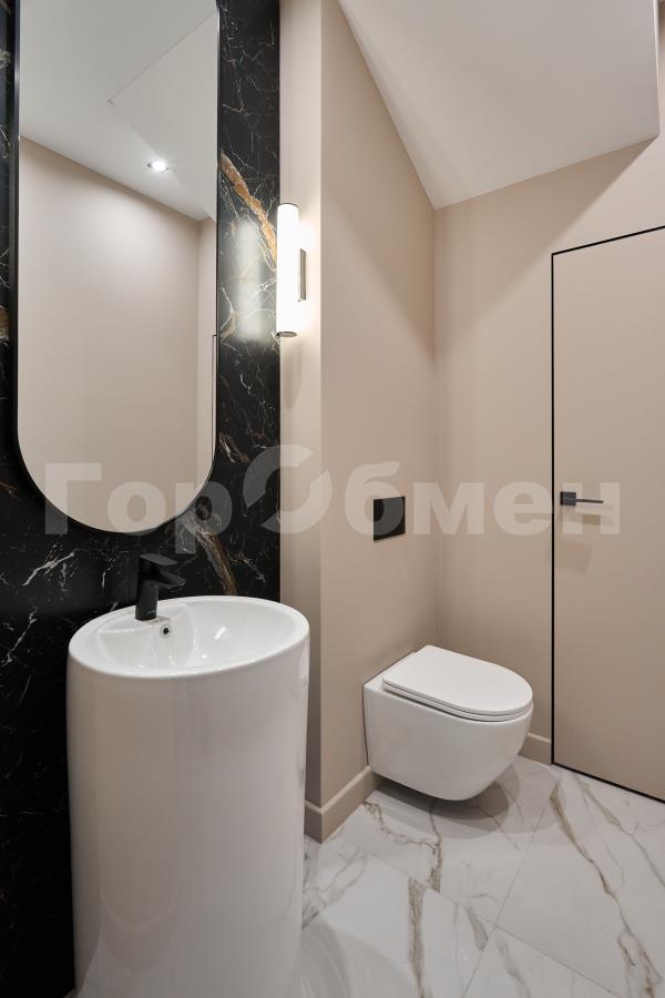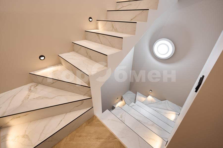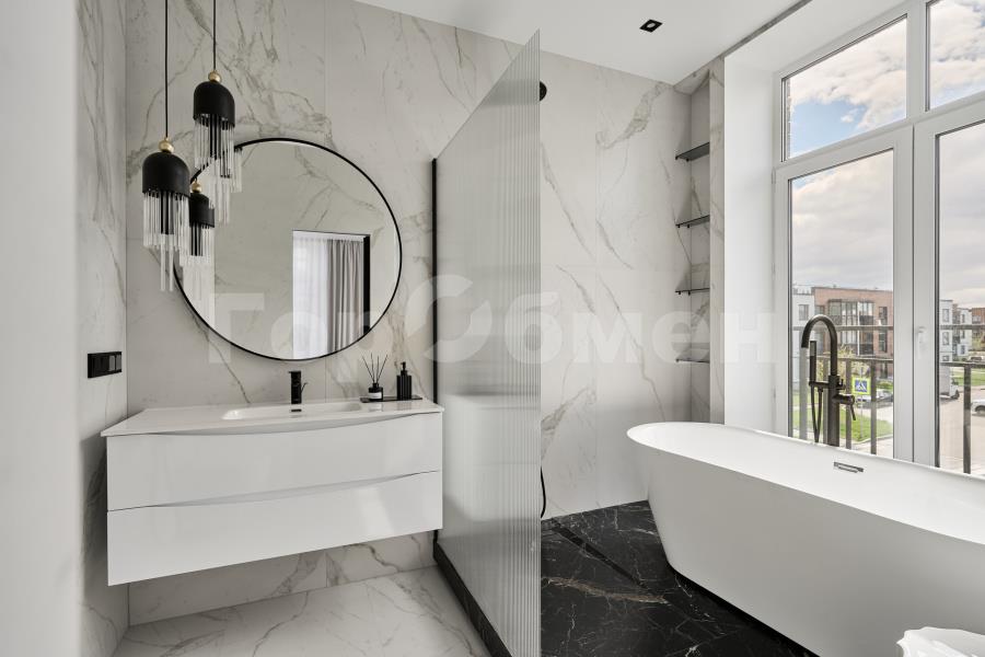 Элегантная мягкая палитра интерьеров, дизайнерские светильники, европейская сантехника и кухонная техника премиум-класса (Bosch).  Стеклянные перила входят в стоимость дома!