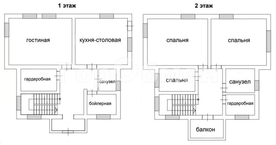 Хорошая планировка в доме: 1-й этаж – большая прихожая, кухня-столовая 21 кв.м. с выходом на участок, гостиная 26 кв.м., санузел, гардеробная, бойлерная; 2-й этаж - 3 спальни (25+23+7) кв.м., холл 10 кв.м., санузел 6 кв.м., гардеробная, балкон.