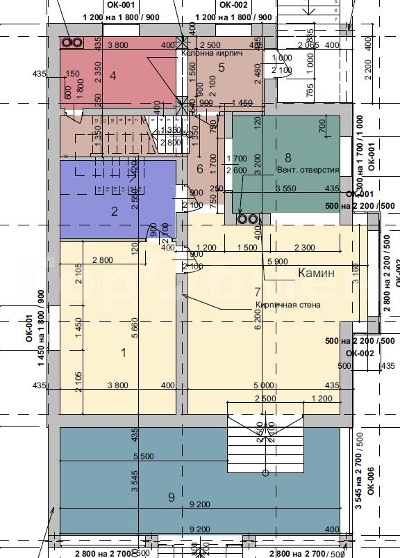 Внутренние несущие стены: Кирпич М200 400 мм,
