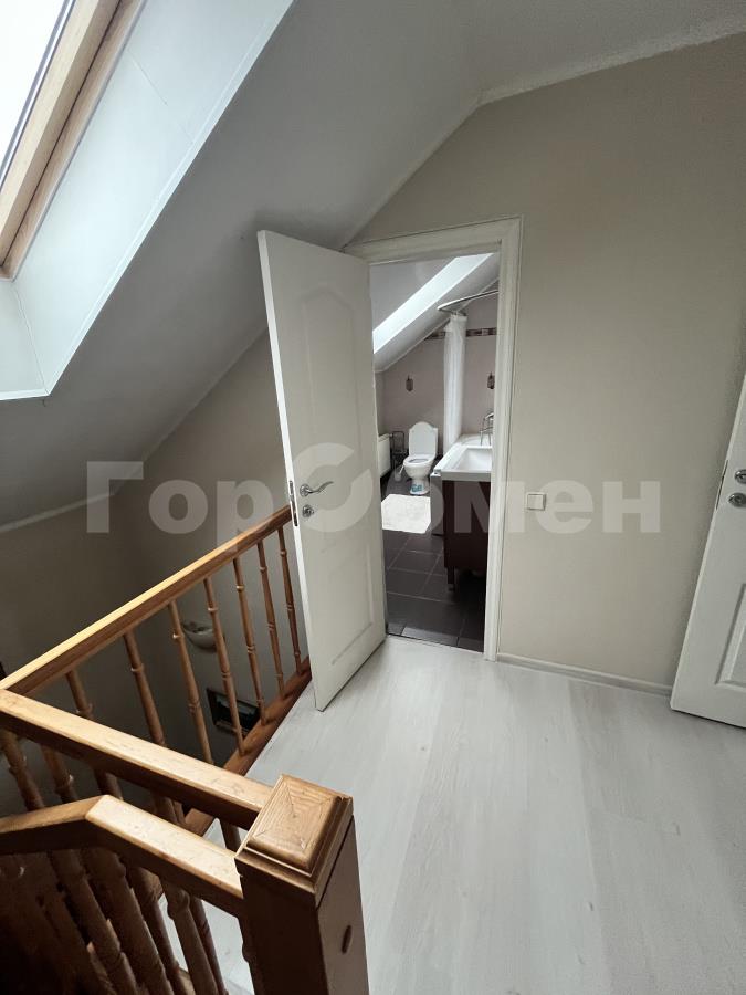 на первом этаже прихожая, удобная кухня, оборудованная всем необходимым и посудомойкой в том числе , столовая + гостиная с камином, изолированная комната, санузел. На втором этаже три светлых спальни с выходом на балкон и мансардными окнами, санузел. см планировку