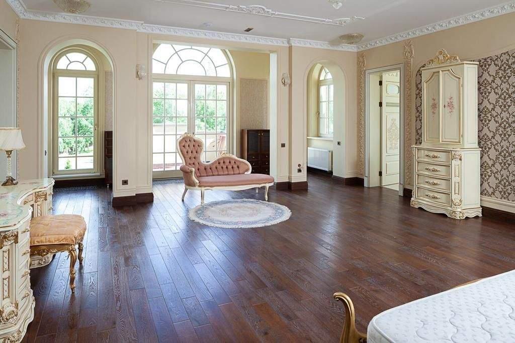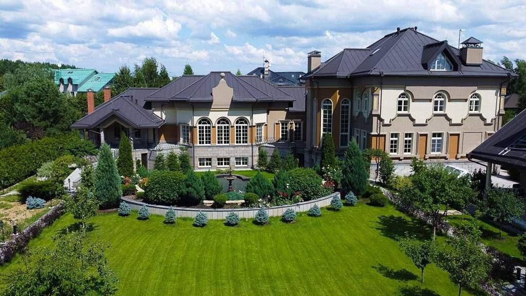 Основной дом имеет площадь 1200 кв.м. В доме выполнен дизайнерский ремонт в классическом стиле. Идеальный вариант для большой семьи, обустроено 7 спален с приватными с/у, ванными и гардеробными комнатами. Для отдыха есть СПА-зона с бассейном, сауной, хаммамом, спортивным залом и комнатой отдыха. Для комфортного передвижения между этажами установлен лифт. Отдельно построены гостевой дом 500 кв.м. и гараж на 4-5 машиномест.