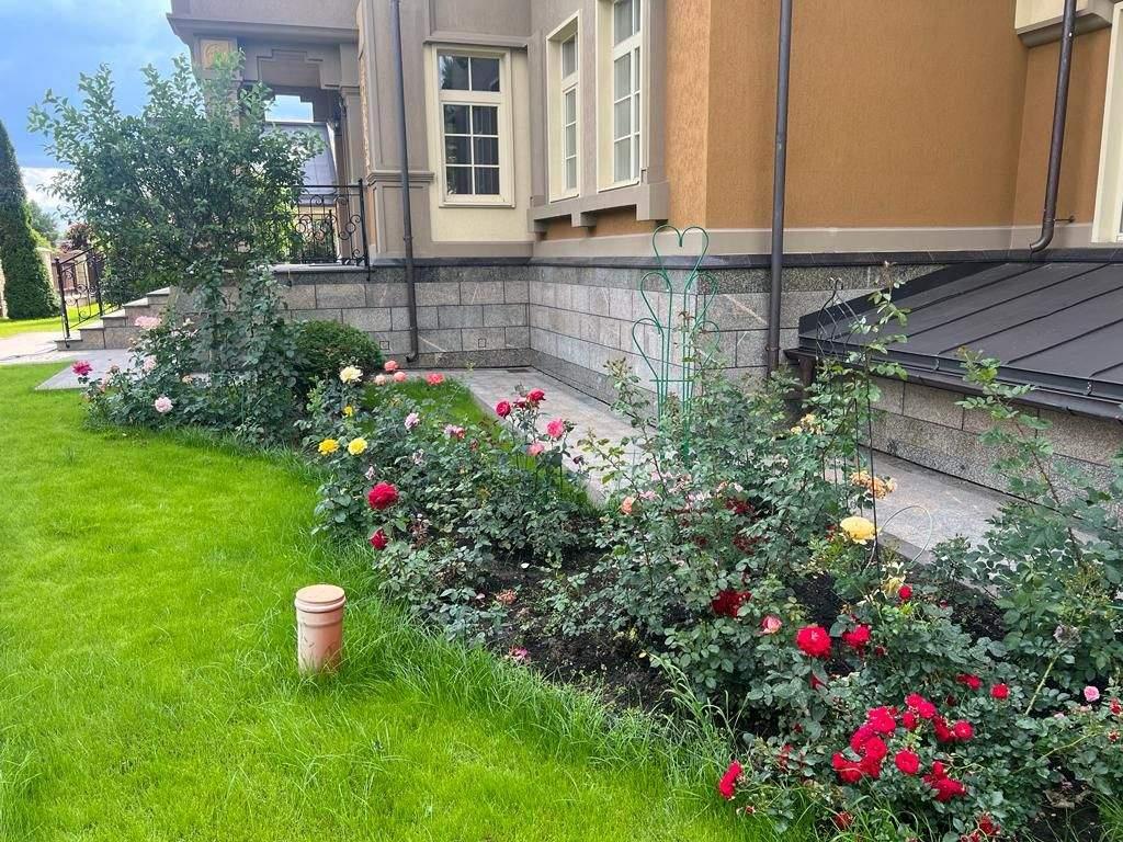 Большой полевой участок 30,5 соток. Выполнен эксклюзивный ландшафтный дизайн. На участке растут плодовые деревья и голубые ели, по периметру высажены туи, установлен живописный фонтан.