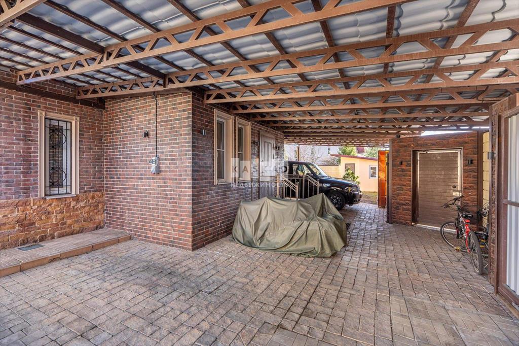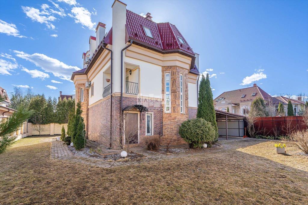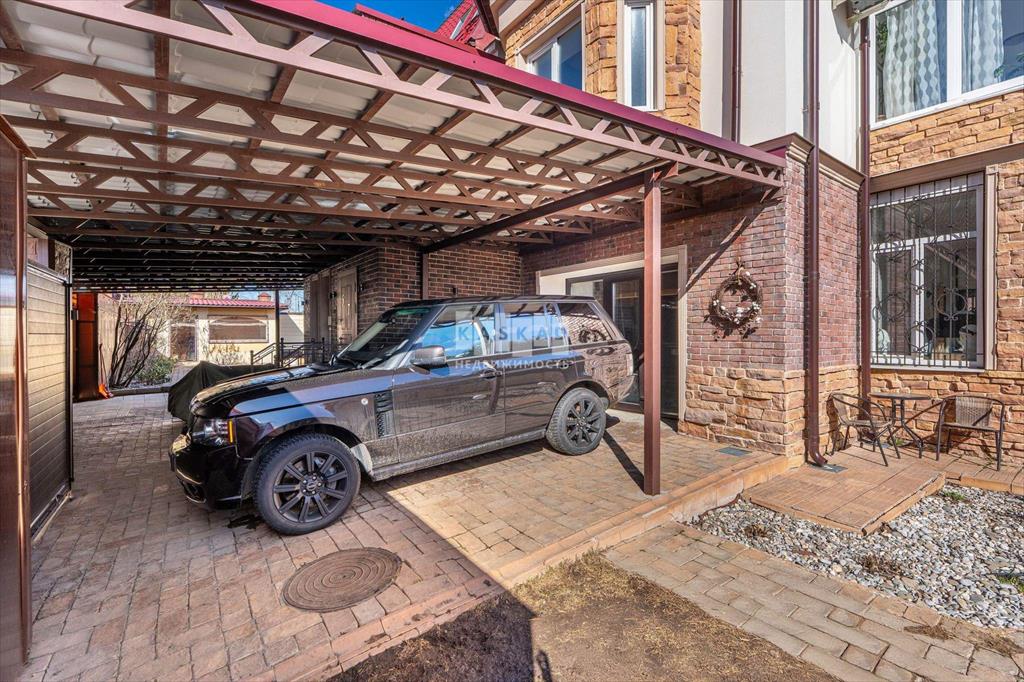 Этот особняк расположился на вершине поселка, на участке в 10 соток, где тщательно спроектирован ландшафт: декоративные каменные тропинки, ели, туи и другие растения, каждое из которых обеспечено автоматическим поливом.