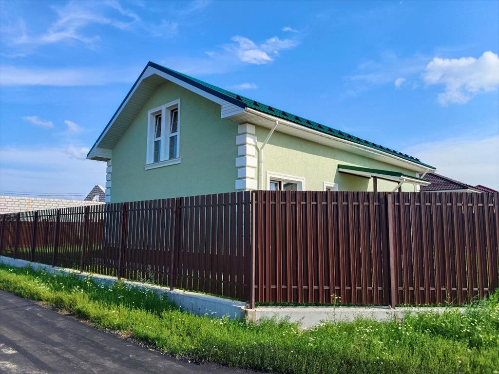 Земельный участок: 6 соток, ровный, правильной формы, перед домом предусмотрено место для парковки 2-х авто. Забор - металлический штакетник высотой 2м.