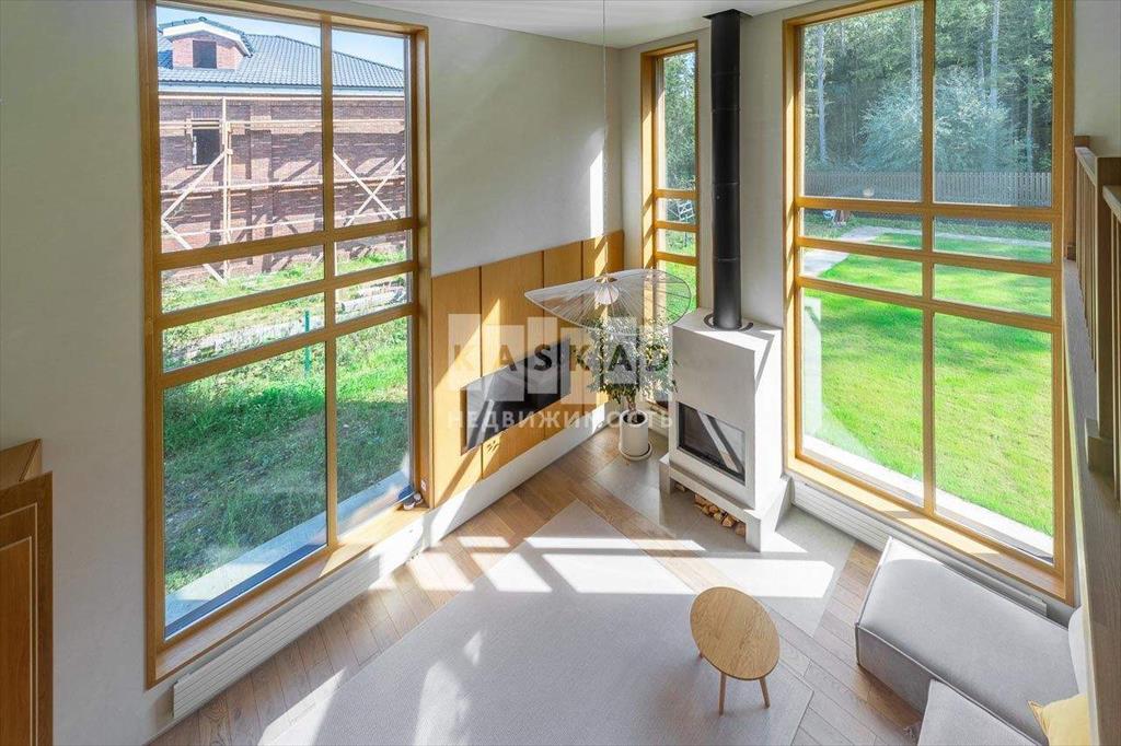 Высота потолков везде 3 м, в каминном зале 6 метров. Теплые полы на двух этажах. Окна с ламинированным покрытием Rehau профиль 70 мм. Топочная оборудована котлом Mizudo, бойлер на 120 л, система очистки воды Экодар.