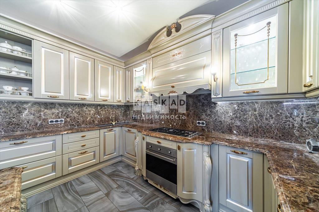 Кухня Tomassi Cucine (самая дорогая модель фабрики) с фасадами премиум-класса и столешницей из мрамора Dark Emperador. Вся кухонная техника бренда Smeg.
