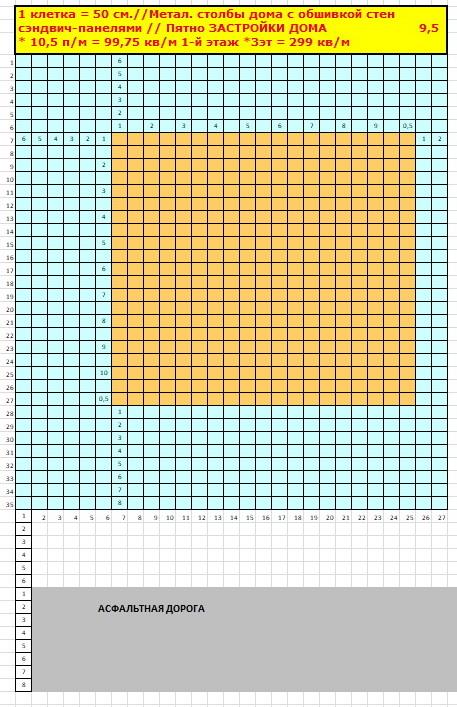 Максимальное пятно застройки дома: 9,5м*12,5м= 118,75 м2 1-й этаж * 3 эт.= 356 м2 нового дома + чердак 100 м2;