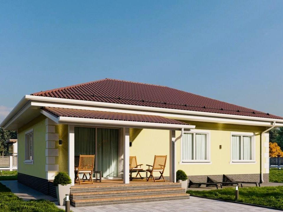 Просторная кухня-гостиная 36 кв.м с окнами на три стороны света и панорамной дверью на крытую террасу; три комнаты (12/14/14 кв.м), ванная комната, бойлерная, гардеробная, прихожая, гостевой с/у.