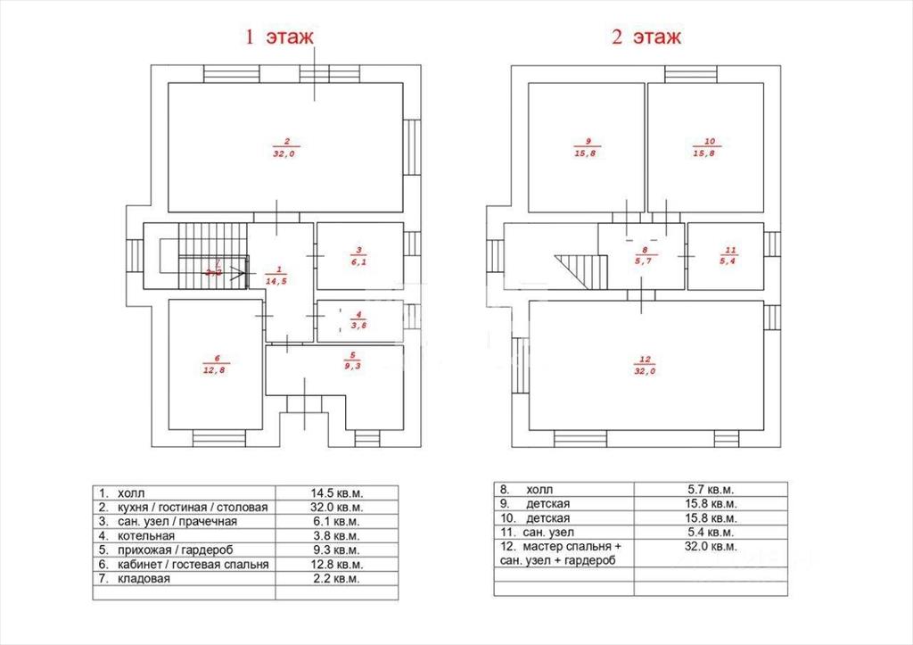 Отделка и материалы: Высота потолков 3.25 м. Стены из газобетона 300 мм + утеплитель 100 мм + облицовочный кирпич. Окна Rehau.