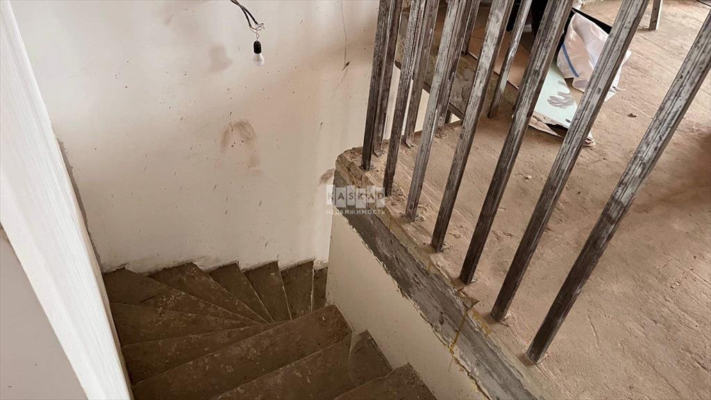 Фундамент ленточный;Стены - газосиликатный блок, толщина стен 55 см, в два блока, по середине 10 см утеплитель;Облицовка - натуральным камнем (ТУФ) ;Отмостка - обложен брусчаткой;