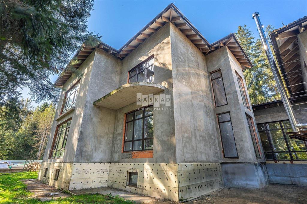 Этот коттедж 850 кв.м. возведен на монолитном фундаменте и имеет прочную каркасную конструкцию. Стены выполнены из керамического кирпича. Крыша покрыта натуральной черепицей. Дом готов к отделочным работам, с уже установленными коммуникациями. Отопительная система основана на высококачественных немецких комплектующих. Планировка дома отвечает самым высоким требованиям современного строительства. С каждого этажа открывается великолепный вид на лес.