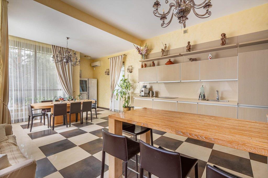 Внутреннее убранство выполнено в сдержанном стиле, без лишних деталей. Мебель, сантехническое оборудование и бытовые приборы - от известных европейских брендов премиум-класса. Дом возведен в 2008 году, а в 2019 была проведена масштабная реновация. Сердцем дома является просторная гостиная, наполненная естественным светом и воздухом, с великолепными панорамными окнами и разнообразными зонами отдыха для каждого члена семьи.