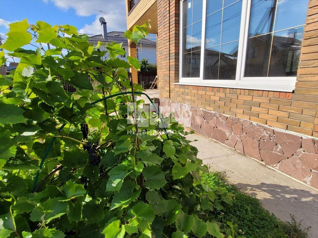Участок поднят грунтом и выровнен перед строительством. Высажены плодовые деревья и кустарники, виноград. Огорожен евроштакетником.