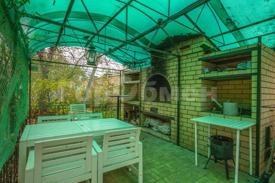 На территории участка расположена беседка с летней кухней и зоной барбекю, окруженная живой изгородью и защищенная навесом. Отдельно стоящее здание котельной с дополнительным помещением для охраны или хозяйственных нужд. Теплый гараж на два автомобиля.