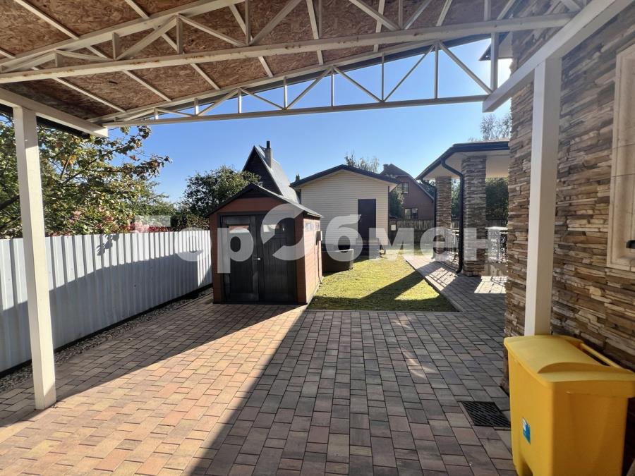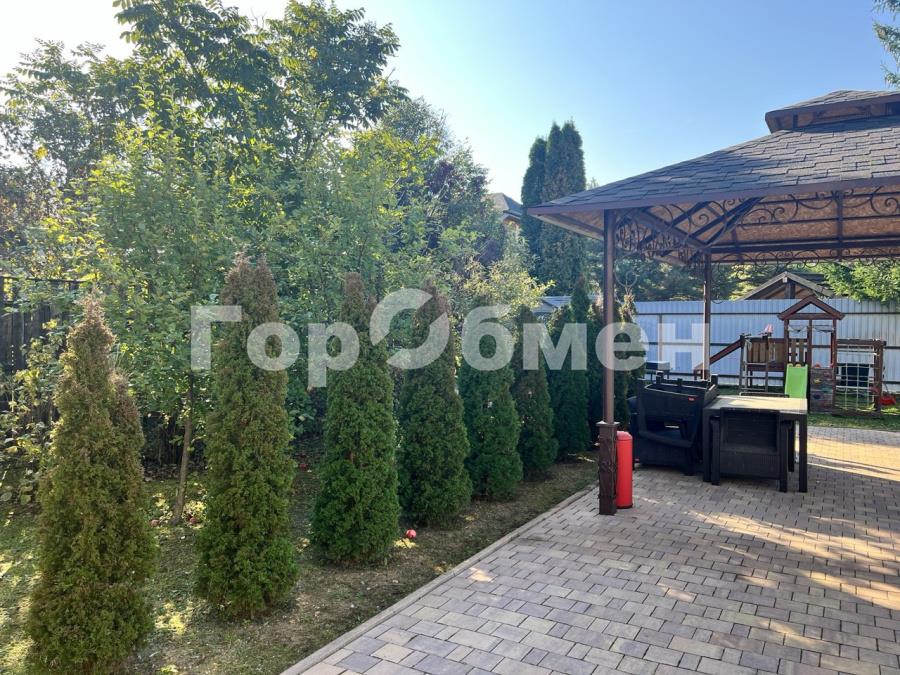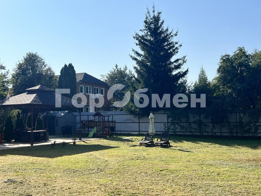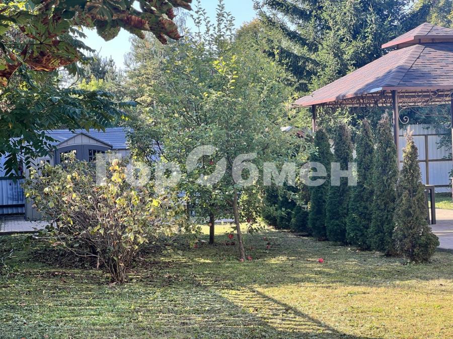 На участке навес для машин, домик 25 кв.м, детский спортивный городок, зона барбекю.