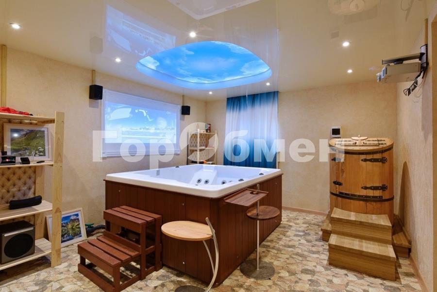 Цокольный этаж - чайная комната, с/у с душем, комната отдыха с джакузи, сауна, домашний кинотеатр, бильярдная, котельная (котел Buderus, бойлер, система водоочистки) , кладовые.