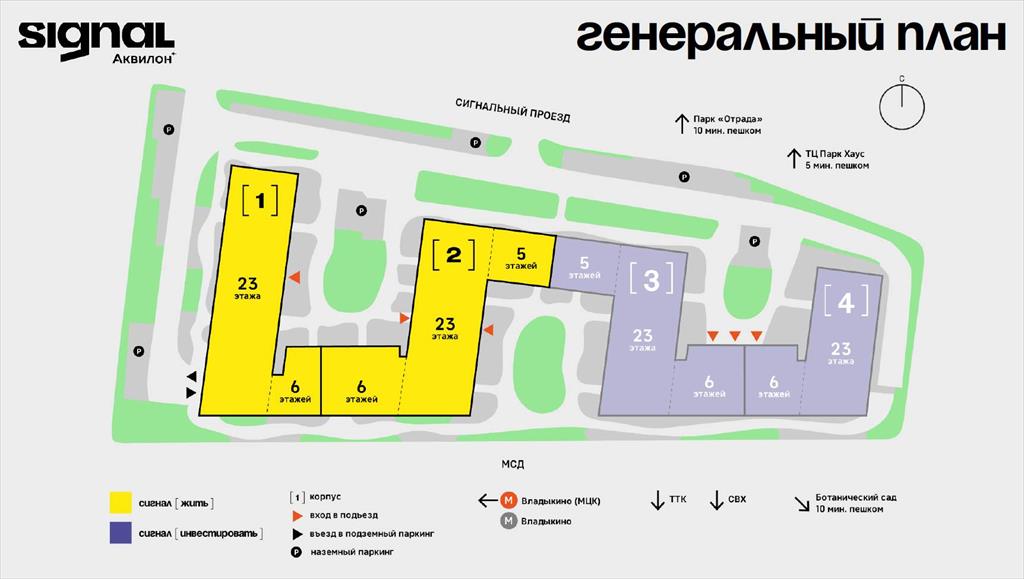 Благодаря высокой загрузке апарт-отеля и большой численности жителей корпусов Signal for life, бизнес будет обеспечен постоянным потоком клиентов. Регулярный спрос на товары и услуги среди резидентов гарантирует стабильность. Расположение в шаговой близости к оживленной станции метро "Владыкино" на первой линии Сигнального проезда обеспечит дополнительную непрерывную посещаемость.