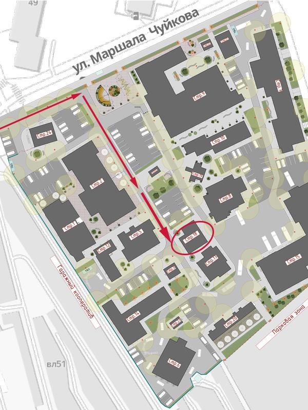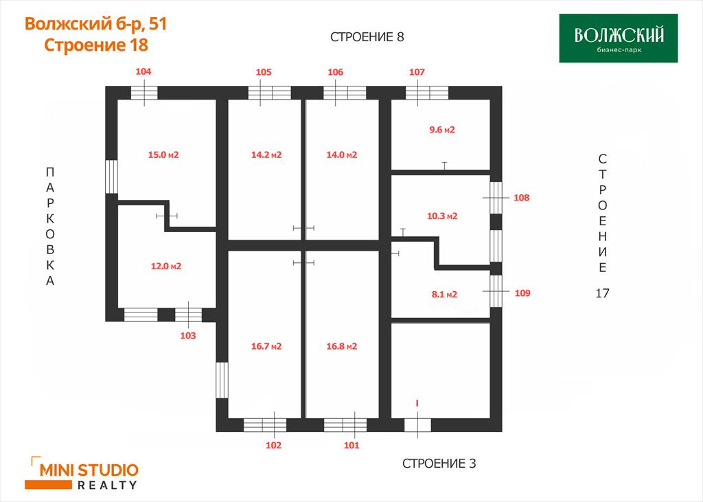 Нежилое помещение расположено в корпусе №18, вход со стороны центральной парковки. Удачное расположение, большой угол обзора.