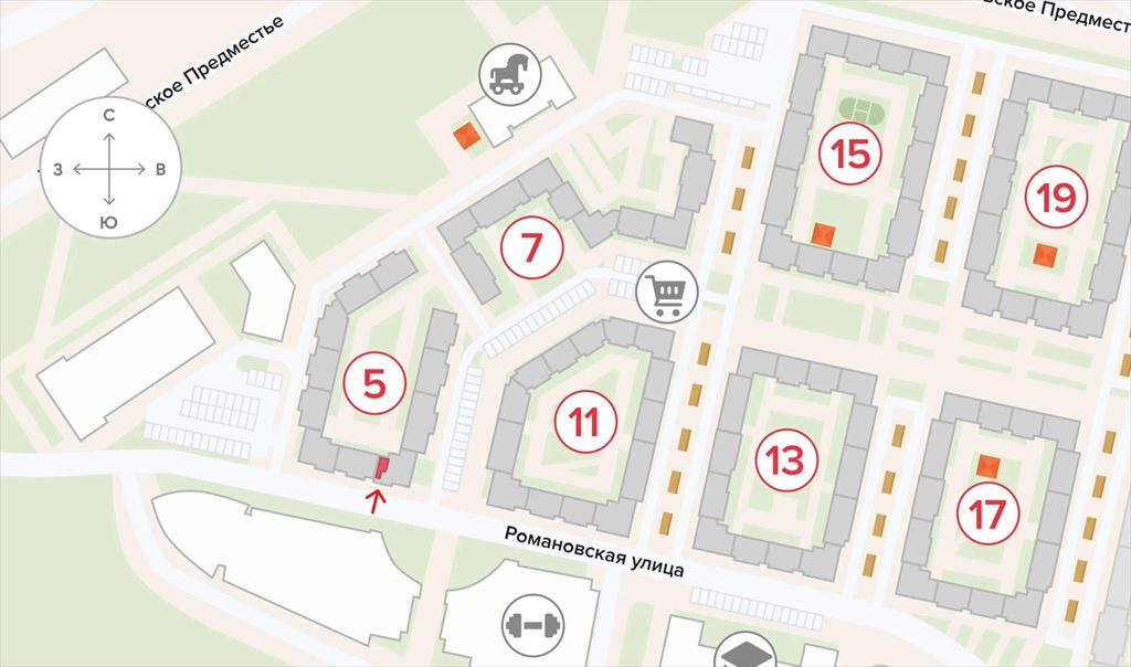 | Предлагается коммерческое помещение площадью 58 м на 1-м этаже 8-этажного жилого дома в ЖК «Новая Рига».