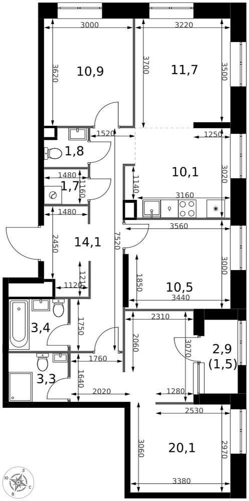 площадью 3,30 м2, по цене 1019700 по адресу Монтажная - влд8/24 |