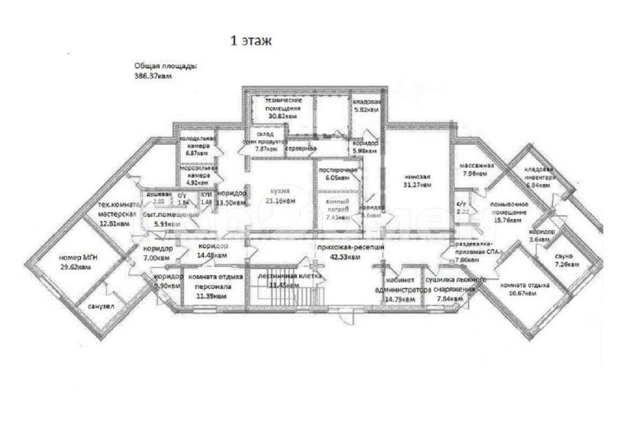 1 этаж: Кухня- бар, кинозал, Сауна и массажная, винный погреб, постирочная, морозильная и холодильная камеры, сушилка для лыжного инвентаря