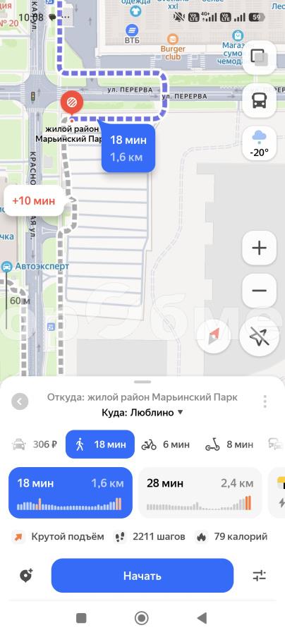 В шаговой доступности от метро Люблино - пешком 14 минут.