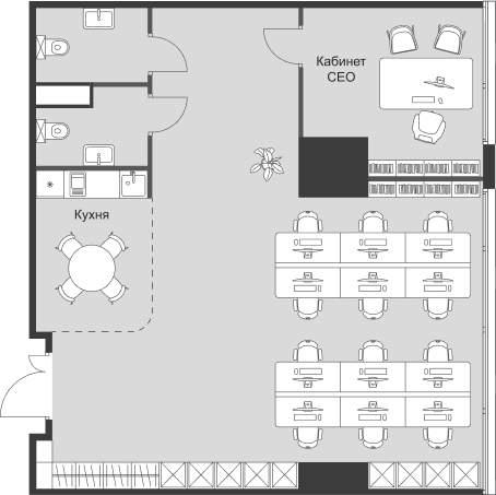 12) Отсутствие колонн в углах здания позволяет создать кабинеты с панорамными видами, подходящие для руководителей