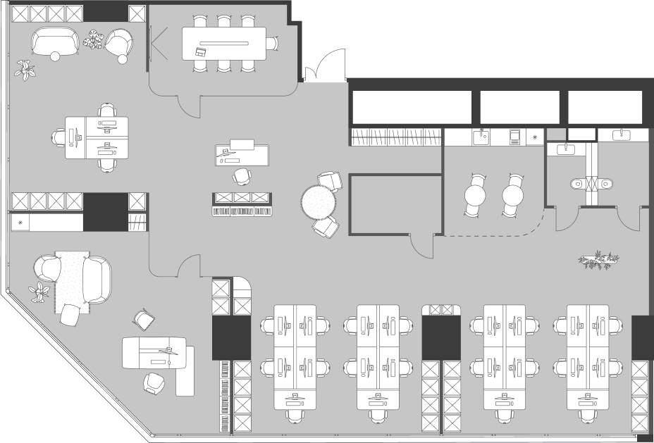 12) Отсутствие колонн в углах здания позволяет создать кабинеты с панорамными видами, подходящие для руководителей