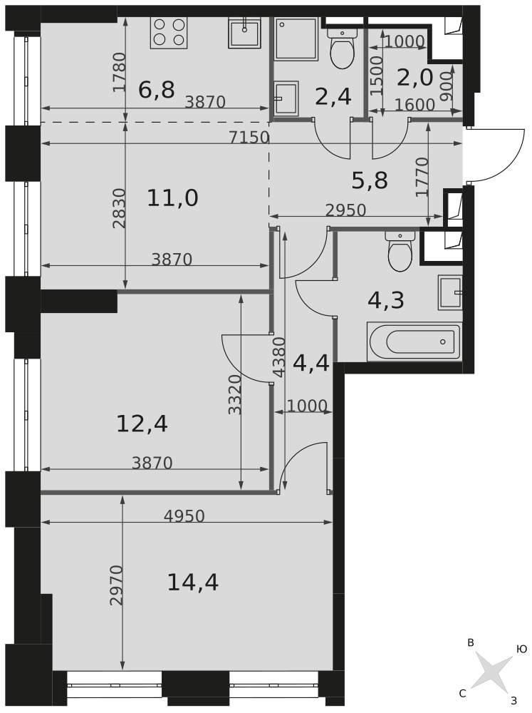 площадью 1,30 м2, по цене 742000 по адресу Шеногина - 2стр3 |