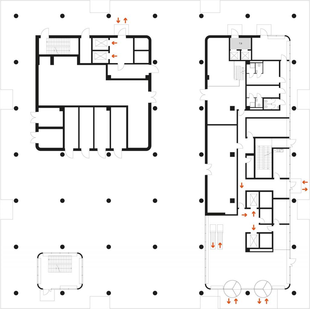 - 3 отдельных лифтовых группы: 8 грузопассажирских лифтов и 2 подъемника, время ожидания - не более 30 сек.
