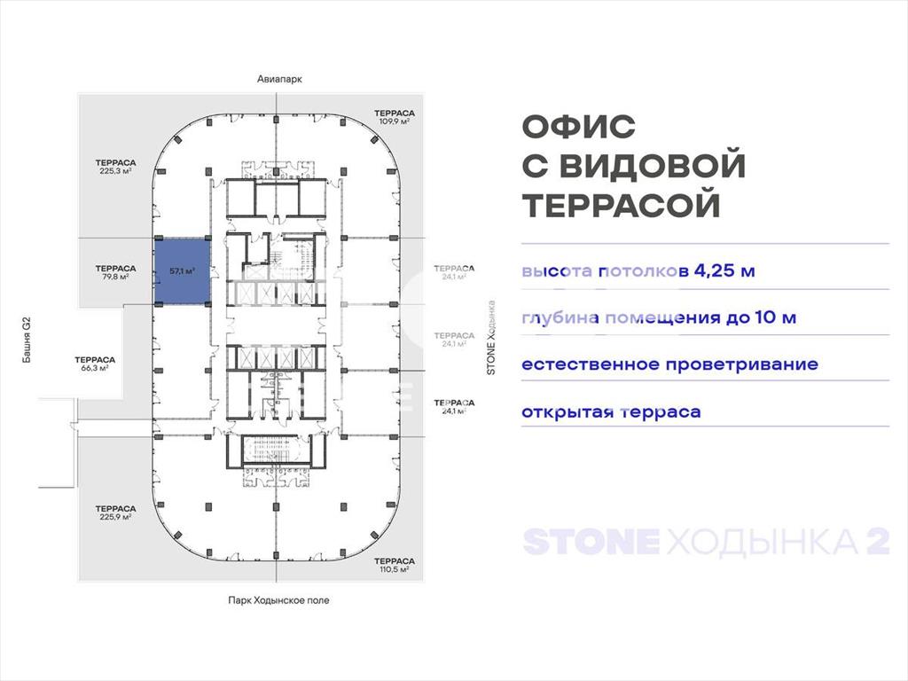 Уникальный формат коммерческой недвижимости - офисы с террасами от 80 кв. м в составе премиального офисного квартала STONE Ходынка 2 с прямым выходом в парк Ходынское поле.