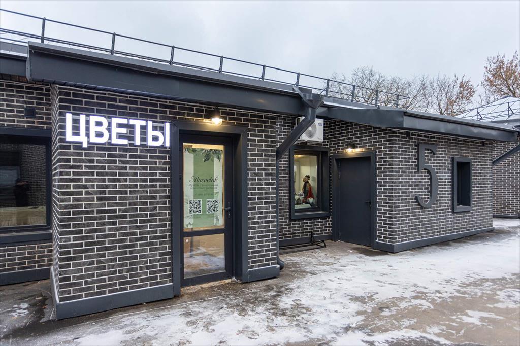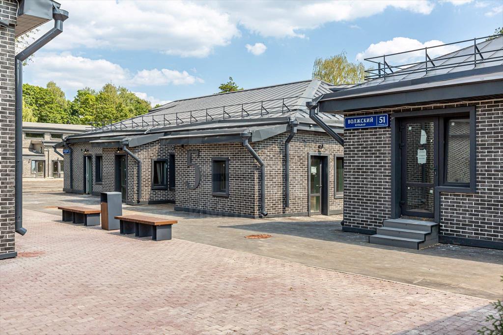 Отделка фасадов выполнена панелями с имитацией клинкерного кирпича. Дополнительно на территории организованы зоны отдыха, дополнительно имеется возможность для организации летних веранд и кафе.