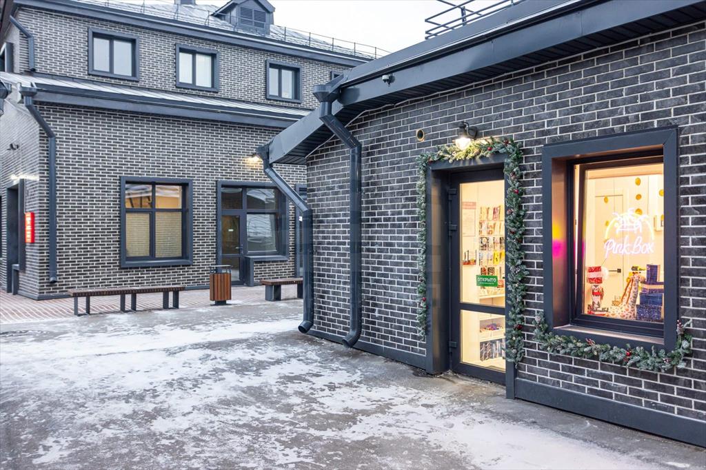 Отделка фасадов выполнена панелями с имитацией клинкерного кирпича. Дополнительно на территории организованы зоны отдыха на свежем воздухе, также дополнительно имеется возможность для организации летних веранд и кафе.