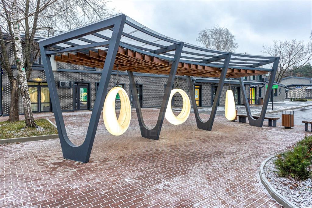 Отделка фасадов выполнена панелями с имитацией клинкерного кирпича. Дополнительно на территории организованы зоны отдыха на свежем воздухе, также дополнительно имеется возможность для организации летних веранд и кафе.