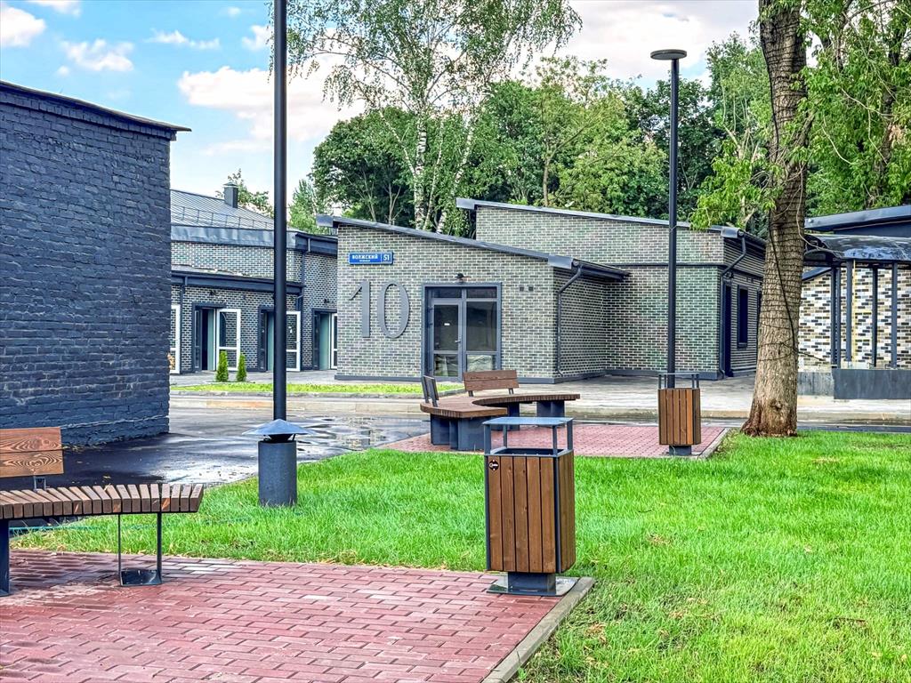 Отделка фасадов выполнена панелями с имитацией клинкерного кирпича. Дополнительно на территории организованы зоны отдыха на свежем воздухе, также дополнительно имеется возможность для организации летних веранд и кафе.