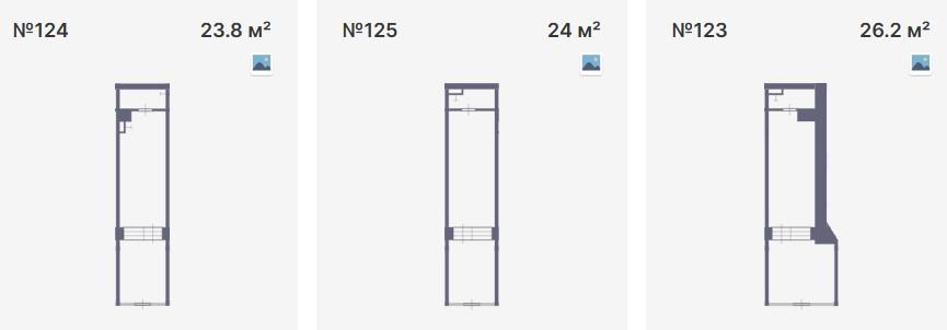 Площадь лотов — 26.2 - 23,8 - 24 м2.