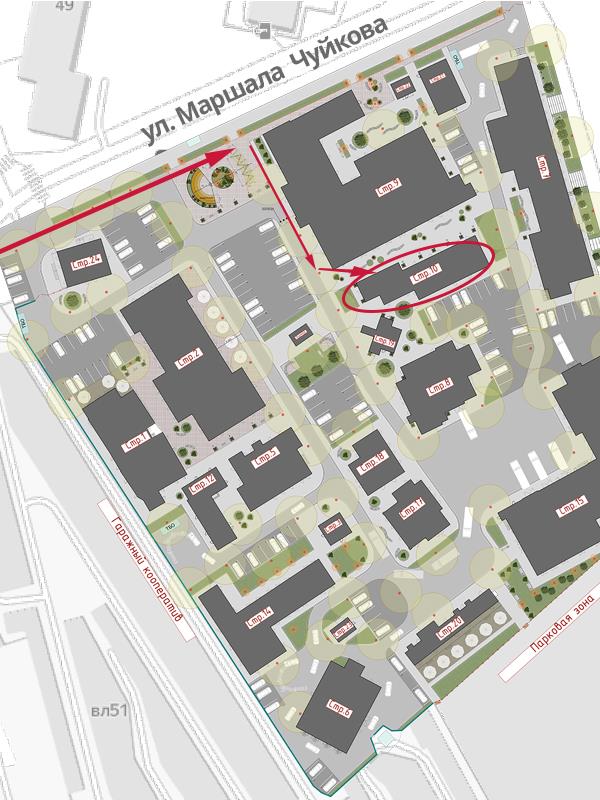 Бизнес-парк находится по адресу Волжский бульвар, вл.51. В шаговой доступности от метро Волжская/Кузьминки, на границе парка-заповедника «Кузьминки-Люблино».