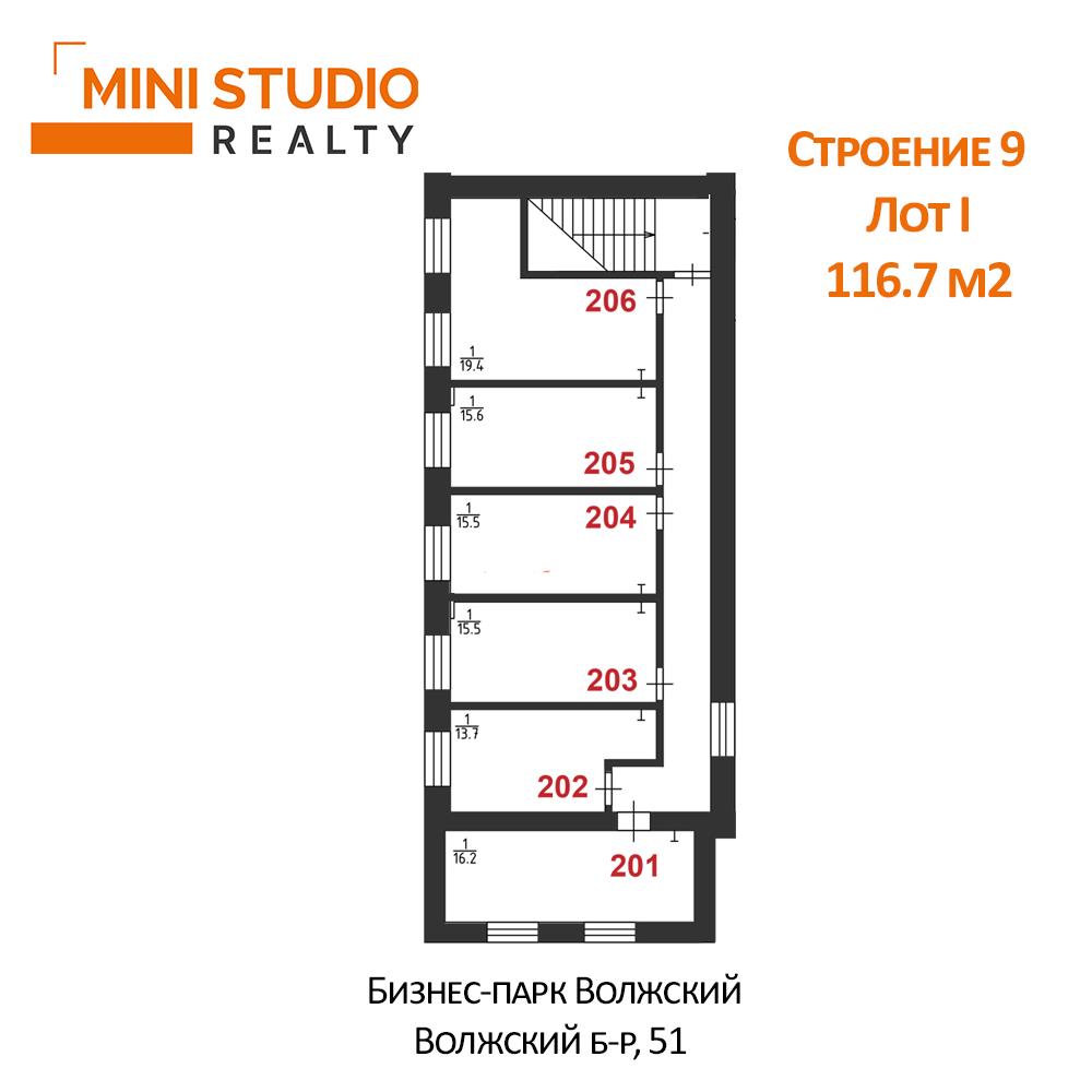 | Продается помещение под офис 16,2 кв.м на 2 этаже в Бизнес-парке Волжский (лот 201 на плане).