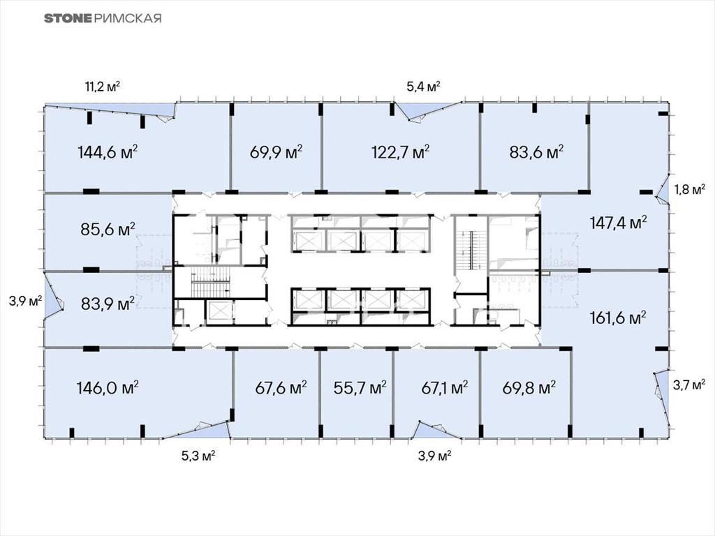 Планировки соответствуют требованиям функционального офиса: глубина помещения - до 10 м, высота потолков - 3,65 м, шаг колонн - 8,4 х 8,4 м, отделка Shell&Core. Окна в пол обеспечат оптимальный уровень инсоляции и предусматривают возможность естественного проветривания.