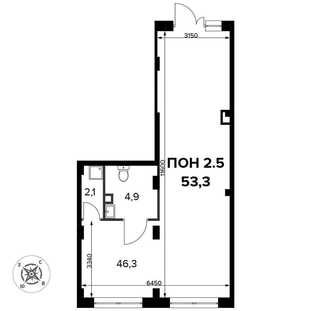 Продаётся коммерческая недвижимость в сданном корпусе общей площадью 53.3 кв. м на 1-м этаже 13 этажного дома.