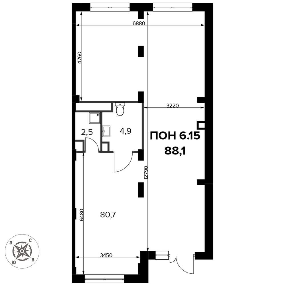 Продаётся коммерческая недвижимость в сданном корпусе общей площадью 88.2 кв. м на 1-м этаже 13 этажного дома.
