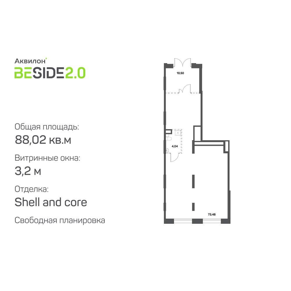 Продается помещение свободного назначения в ЖК BESIDE 2.0, общей площадью 88.02 кв.м. на 1-м этаже 28 этажного дома.