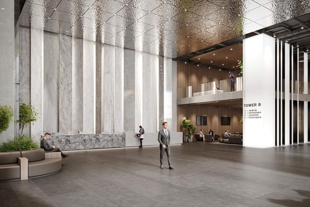 -Визитная карточка проекта - Гранд-лобби площадью 1500кв.м. и высотой 9 метров