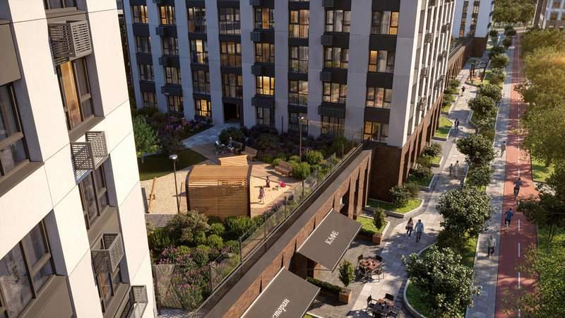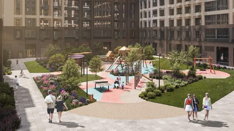 Весь микрорайон спроектирован в концепции «без машин». Пейзаж не портят припаркованные автомобили, а родители могут не опасаться за перемещение детей по всему кварталу.