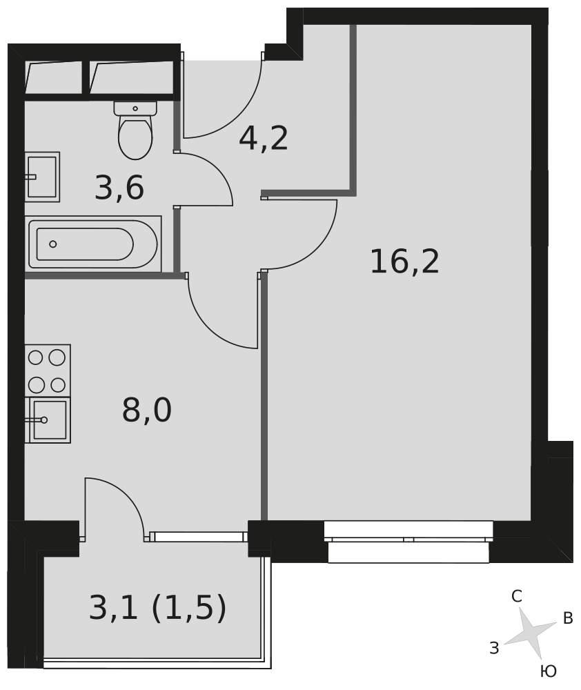 Продаётся 1-к квартира №549 в сданном корпусе общей площадью 33.5 кв. м на 8-м этаже 9 этажного дома.