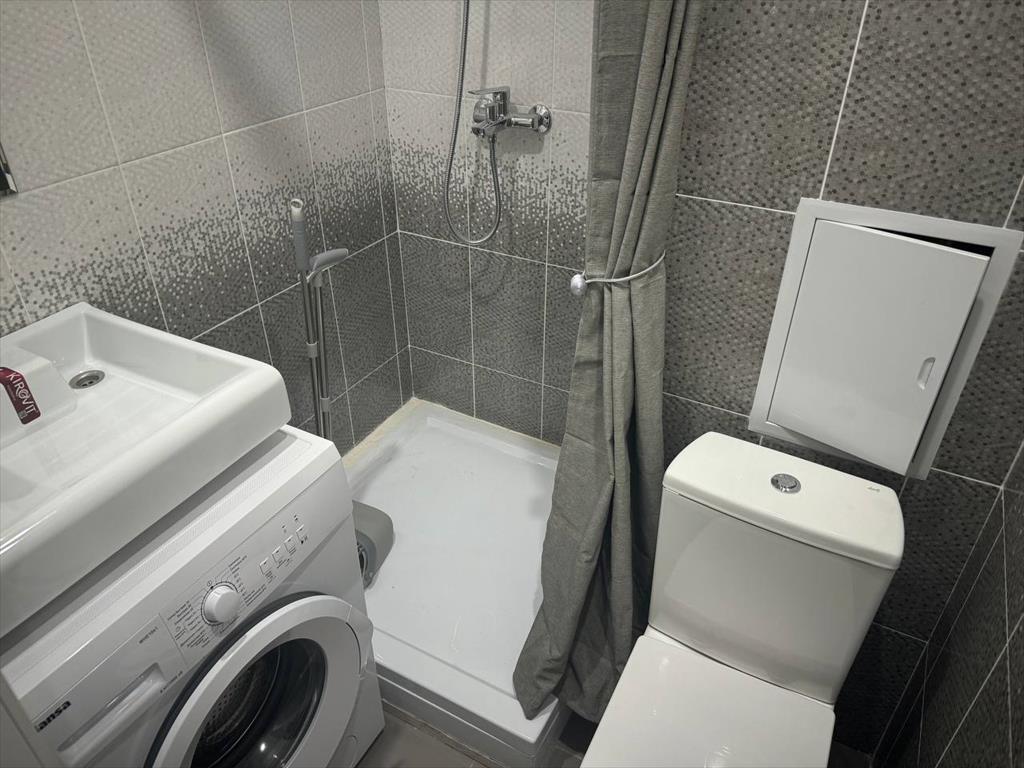 Здесь установлены новые надежные коммуникации и железобетонные перекрытия. В студии выполнена евроотделка, что избавит вас от лишних за от с обустройством помещения. Тут уже есть качественная металлическая дверь c внешней вставкой и зеркальной панелью, натяжные потолки, радиаторы. Санузел отделан под ключ, внутри есть унитаз, раковина, смеситель, поддон для душевой кабины и душевой гарнитур.