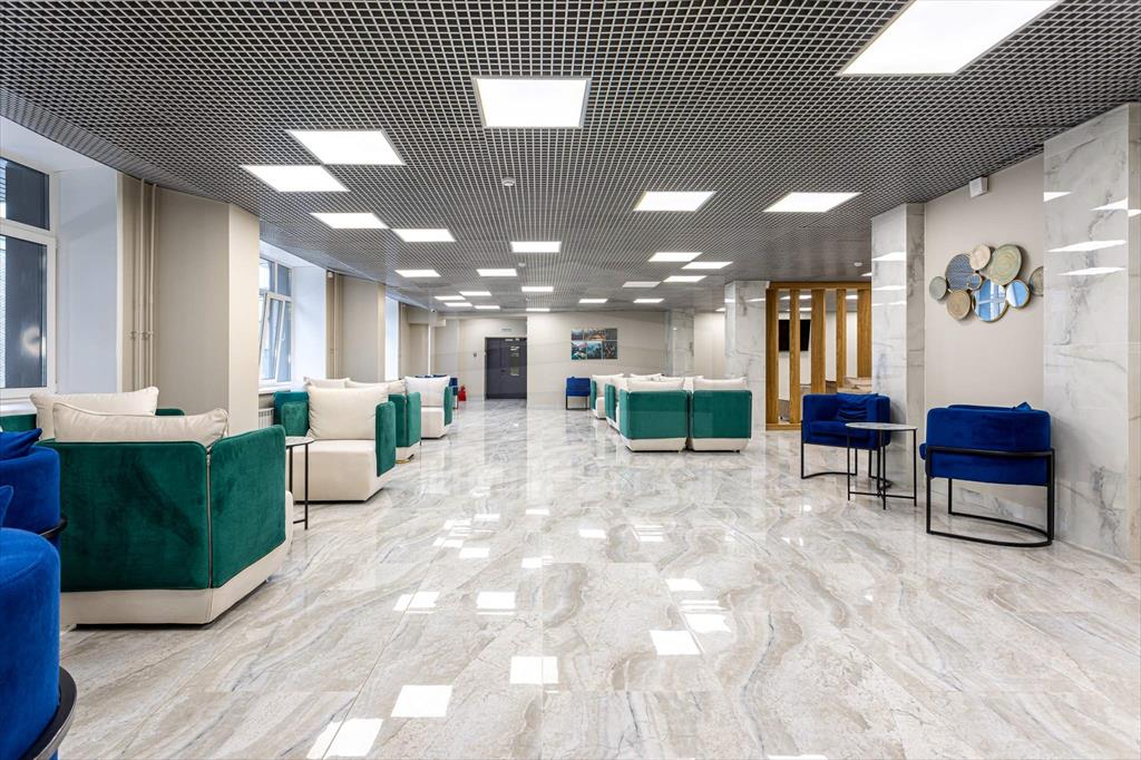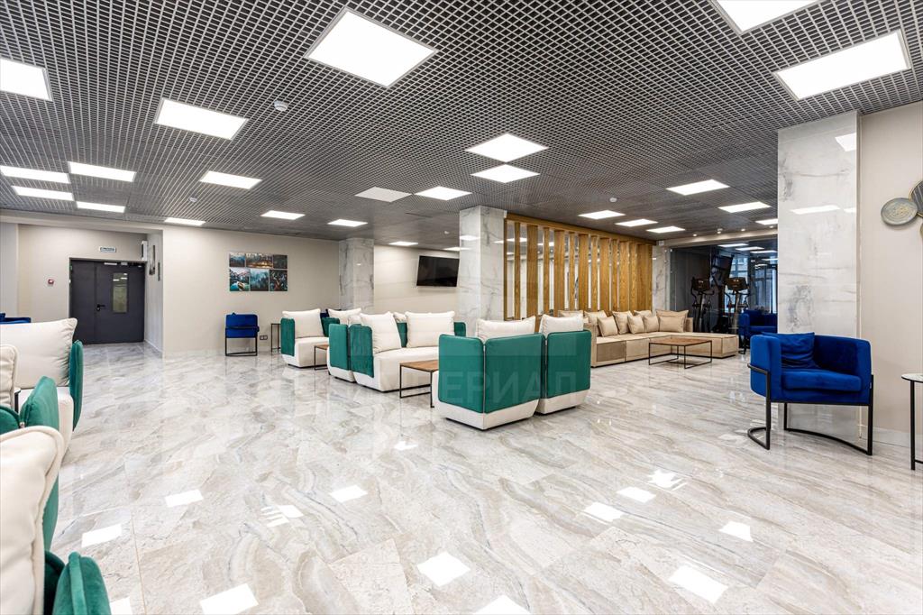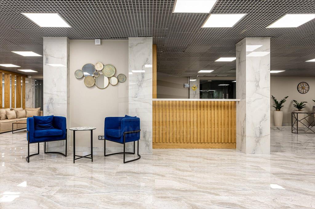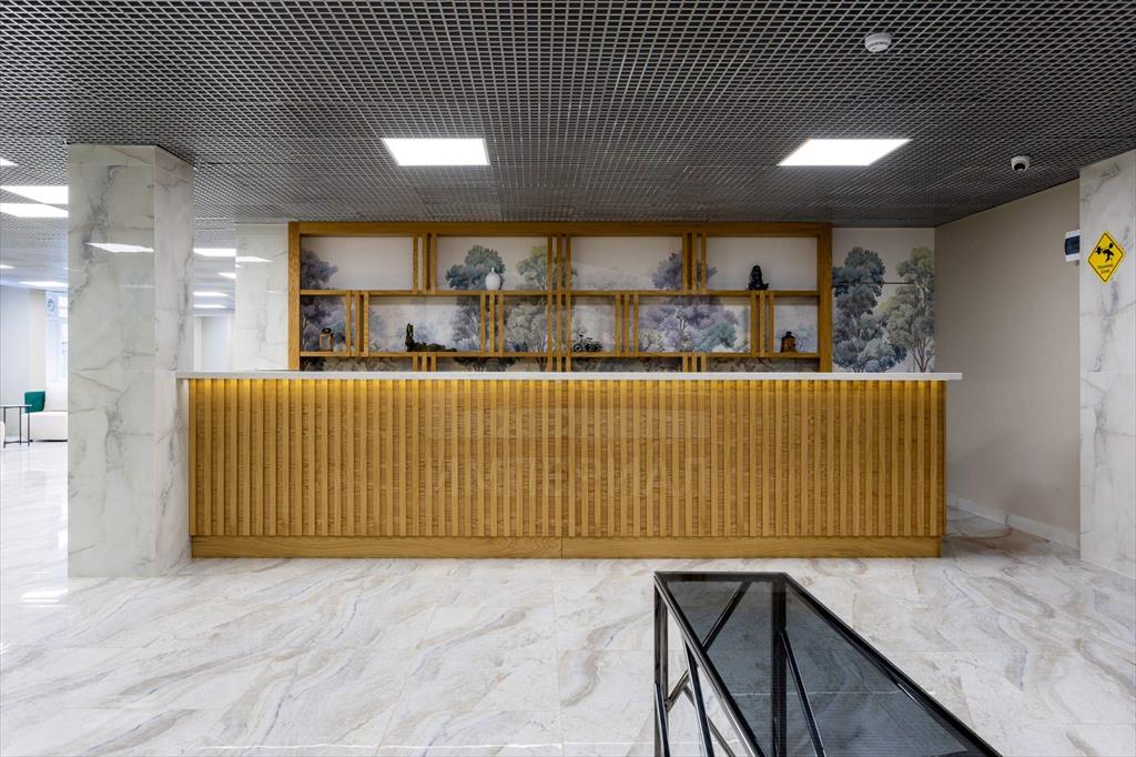 При входе резиденты и их гости попадают в стильное лобби с ресепшеном, а также лаундж-зону. Стильный интерьер в светлых тонах создает домашнюю уютную атмосферу и в то же время подчеркивает статус комплекса.