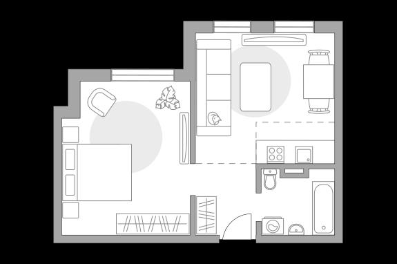 Жилая площадь 27.88 м2, кухня 2.71 м2. Площадь комнат: 15.53/12.35 м2, черновая отделка, окна выходят на улицу.